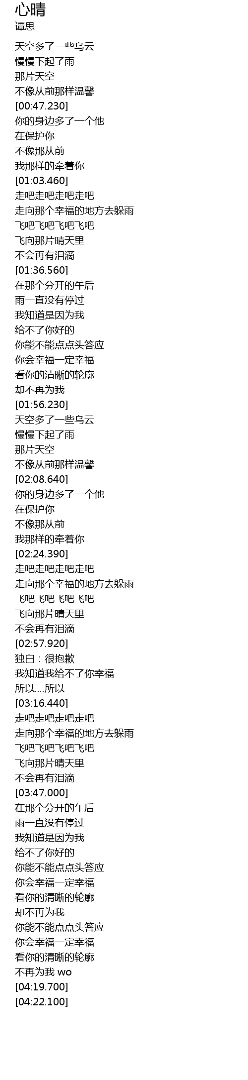 | [00:34.690] | 天空多了一些乌云 |
