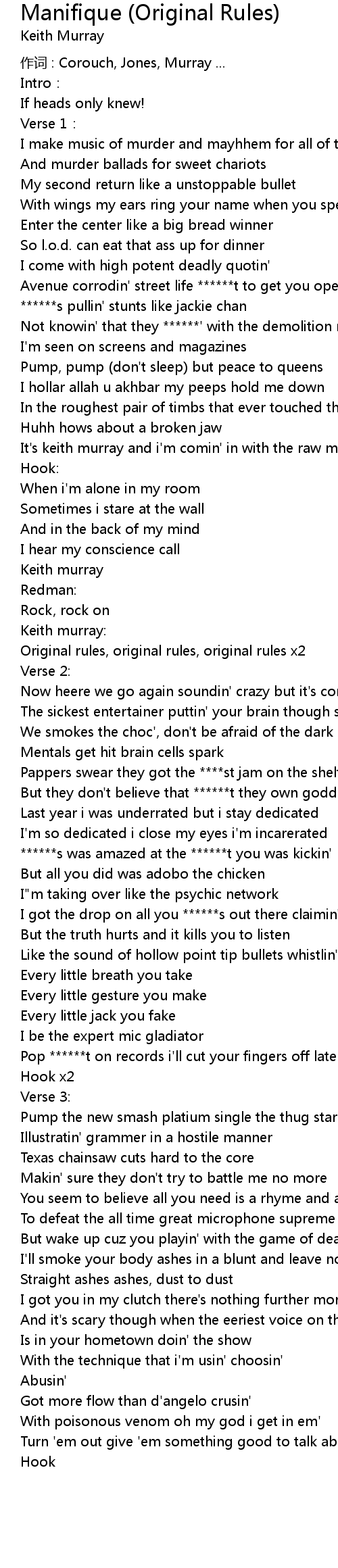 | It's keith murray and i'm comin' in with the raw metaphors | |