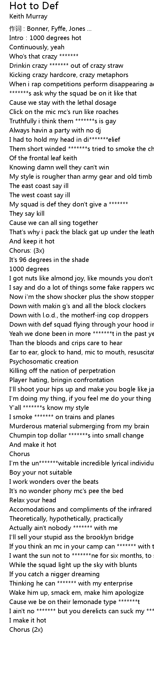 | Song | Hot to Def |