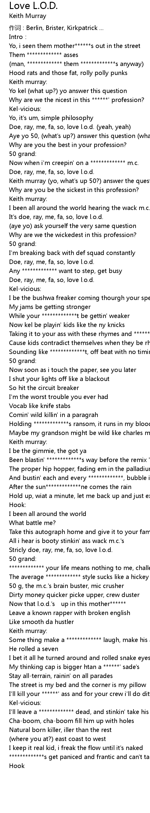 | Keith murray yo, what' s up 50? answer the question? what' s that? | |