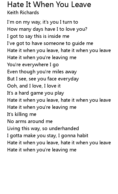 Hate it when you leave, hate it when you leave |
