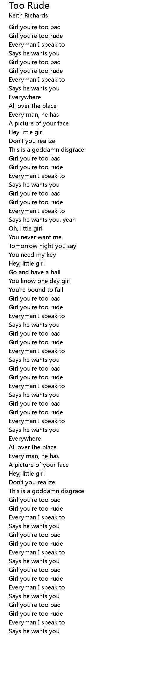 | Girl you're too rude | |