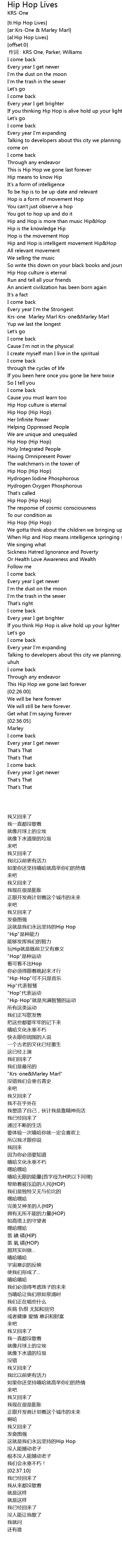 | [00:36.35] | Hip and Hop is more than music Hip&Hop |