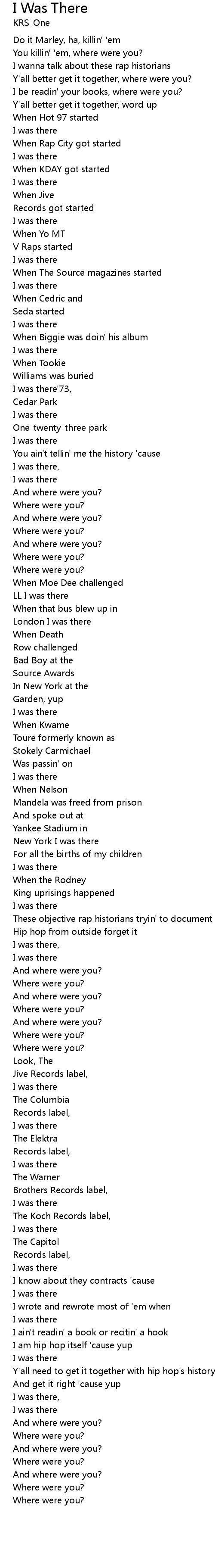 You killin' 'em, where were you? |