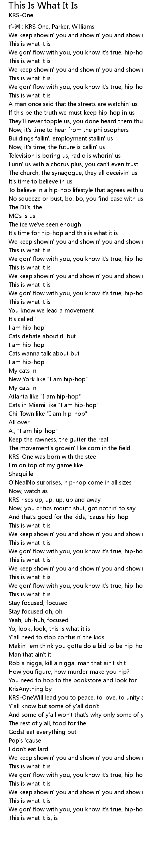 | 作词 : KRS One, Parker, Williams | |