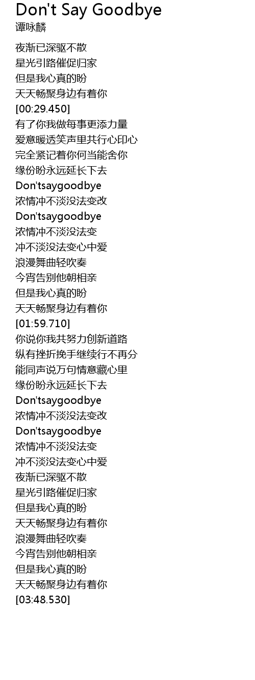 | [00:59.450] | yuán fèn pàn yǒng yuǎn yán cháng xià qù |