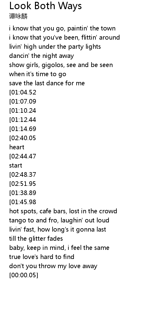 | [03:11.06][02:51.95][01:31.69] | oh look both ways before you break my heart |