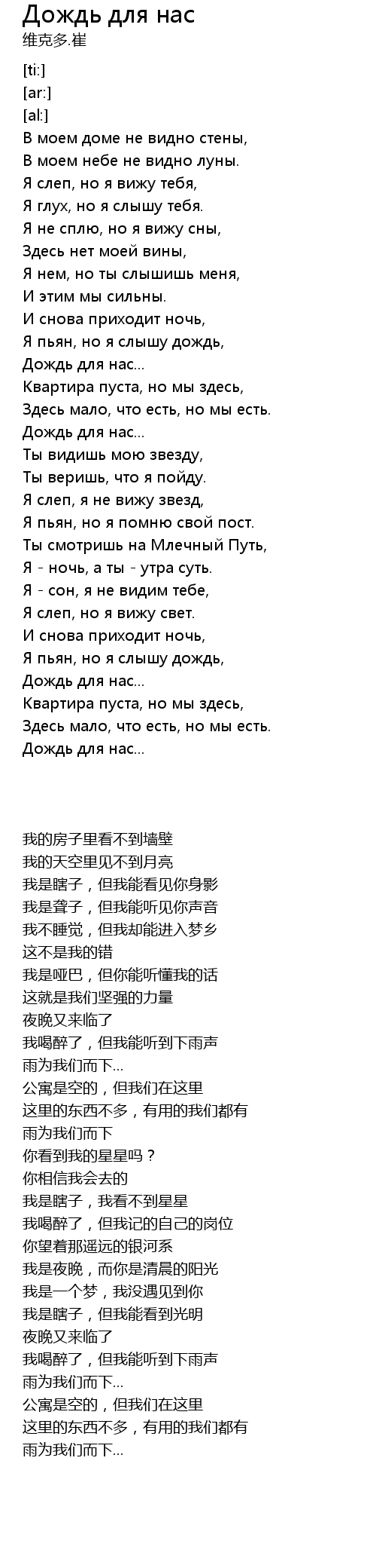 Я пьян, но я слышу дождь, |