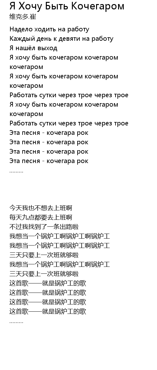 Я хочу быть кочегаром кочегаром кочегаром |