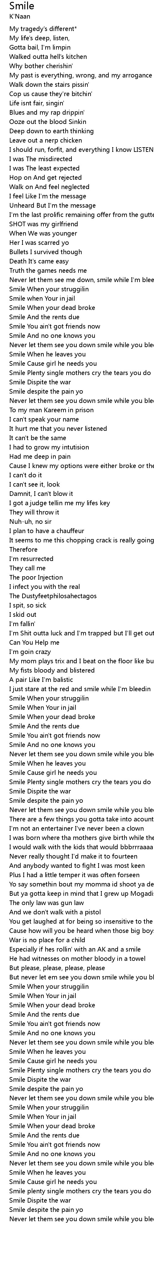 But never let em see you down smile while you bleedin' |
