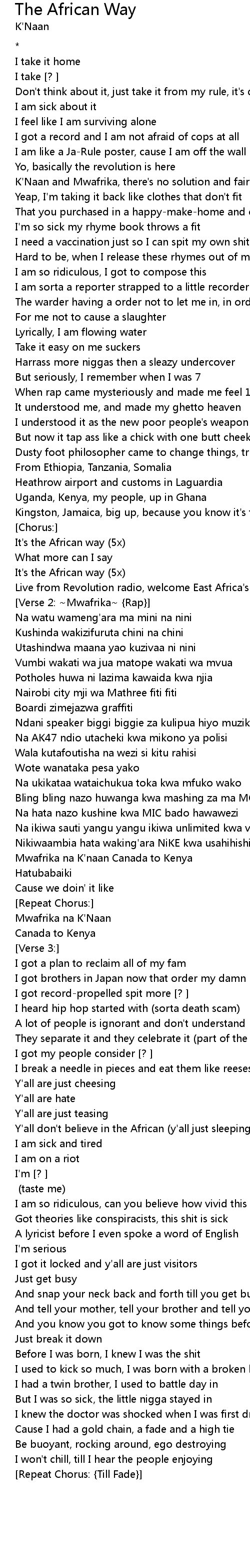 It's the African way (5x) |