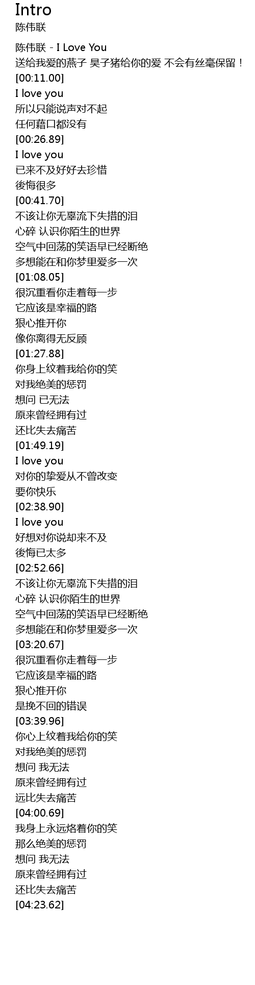 | [00:02.00] | 陈伟联 - I Love You |