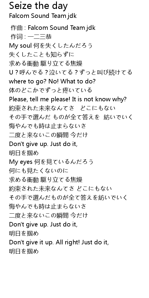 | [03:06.510] | Don't give it up. All right! Just do it, |