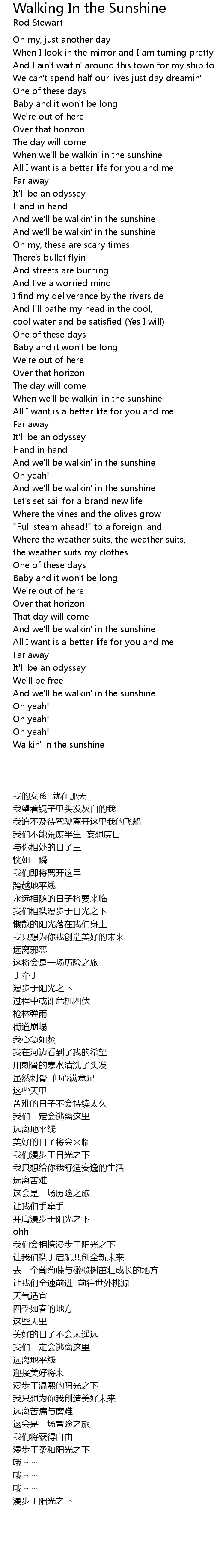 And we'll be walkin' in the sunshine |