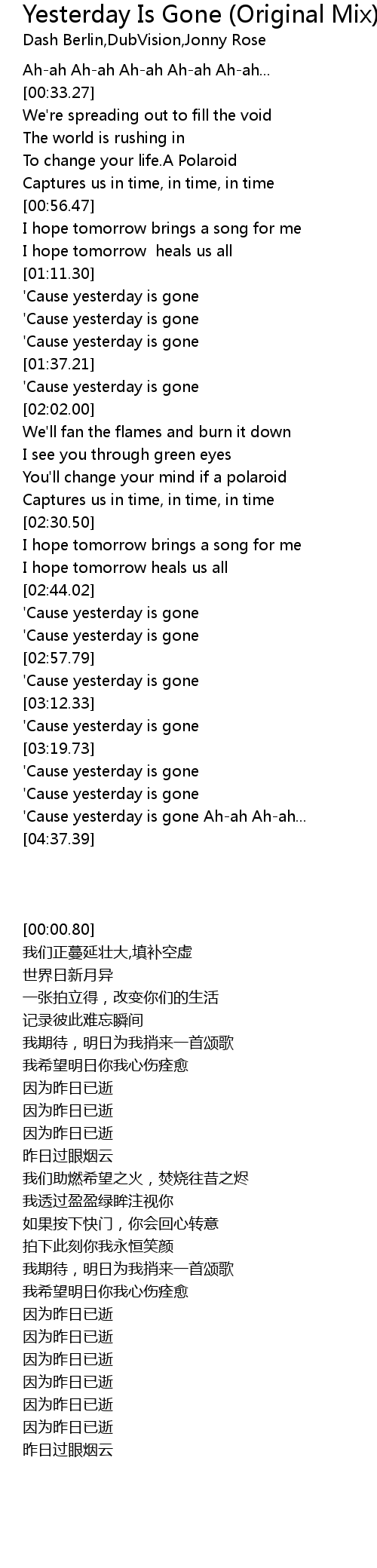 'Cause yesterday is gone Ah-ah Ah-ah... |