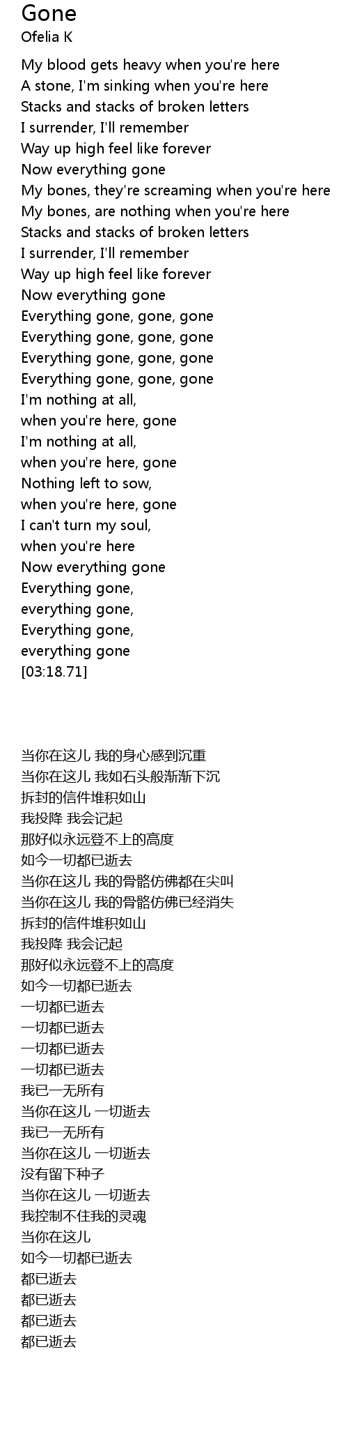 | [01:48.91] | Everything gone, gone, gone |