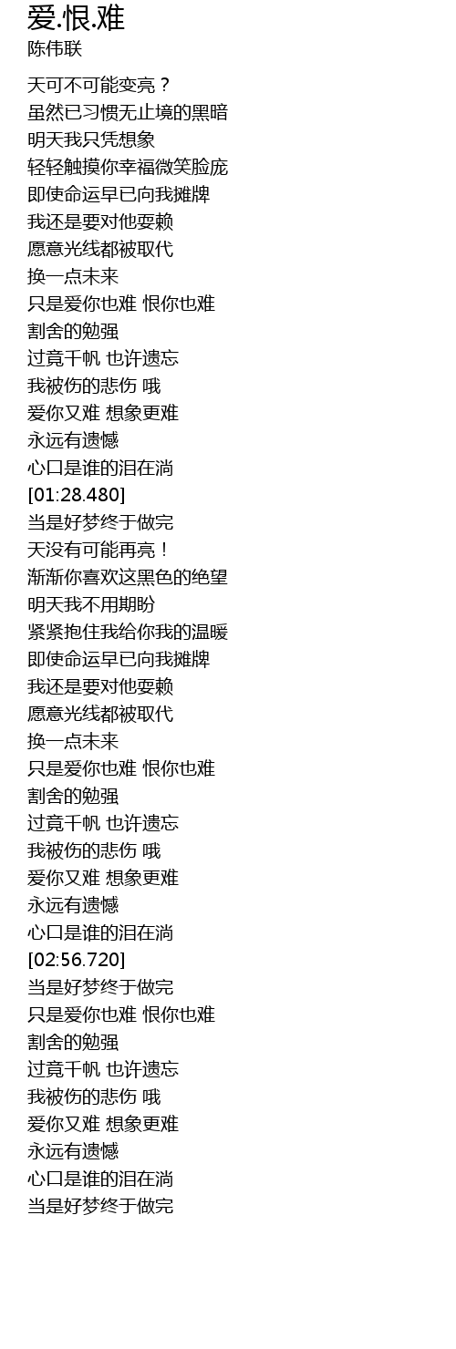 | [02:30.320] | 只是爱你也难 恨你也难 |