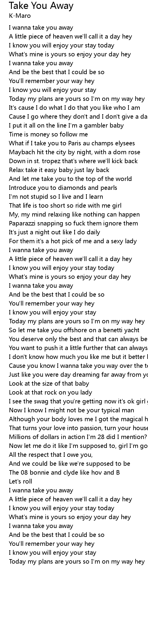 I wanna take you away |