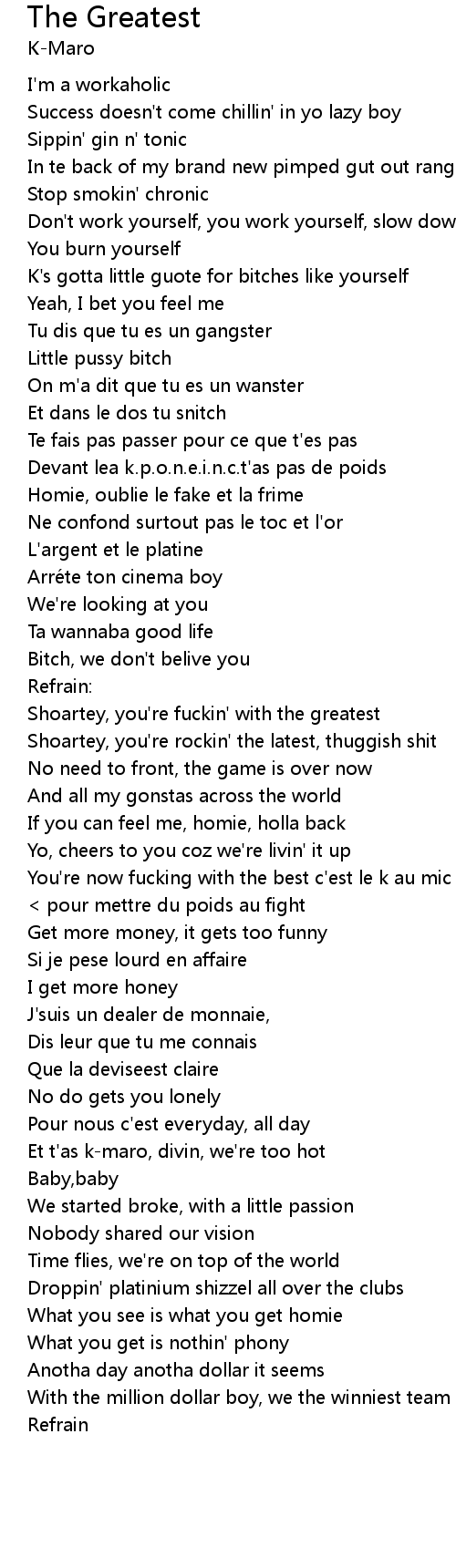 | Shoartey, you' re rockin' the latest, thuggish shit | |