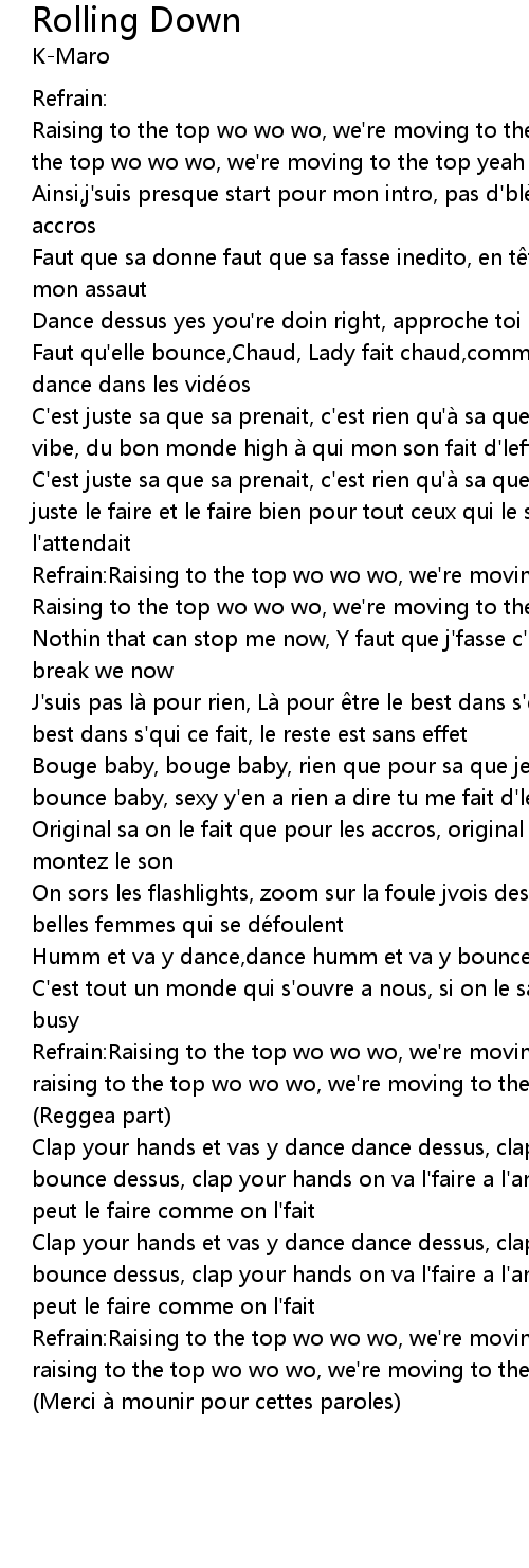 | Refrain:Raising to the top wo wo wo, we're moving to the top yeah yeah yeah, raising to the top wo wo wo, we're moving to the top yeah yeah yeah(3x) | |