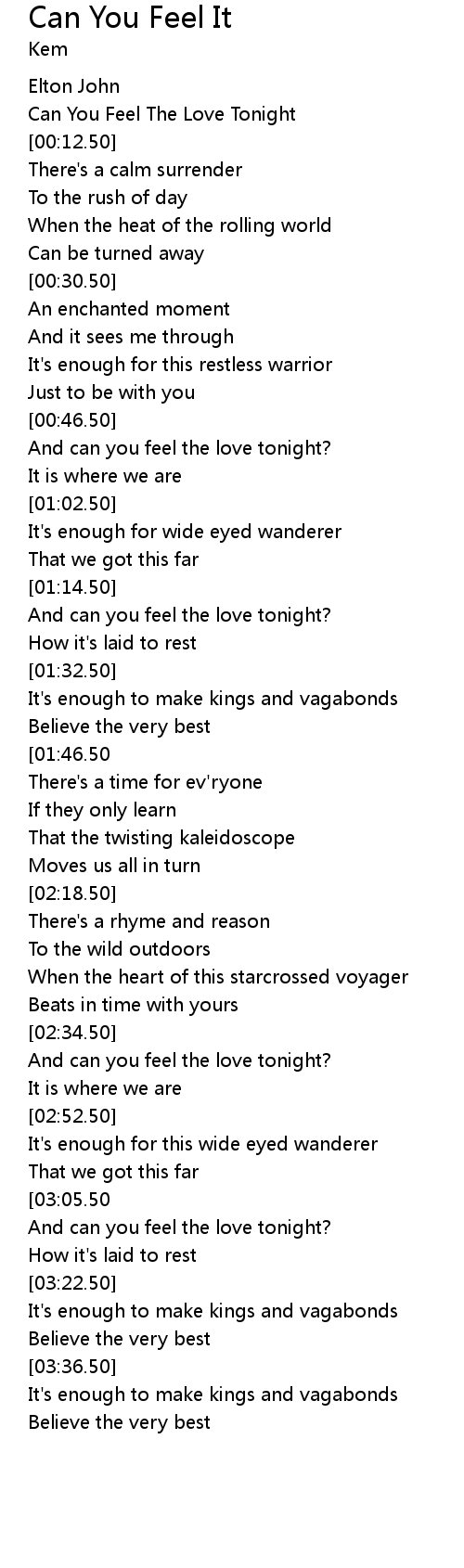And can you feel the love tonight? |
