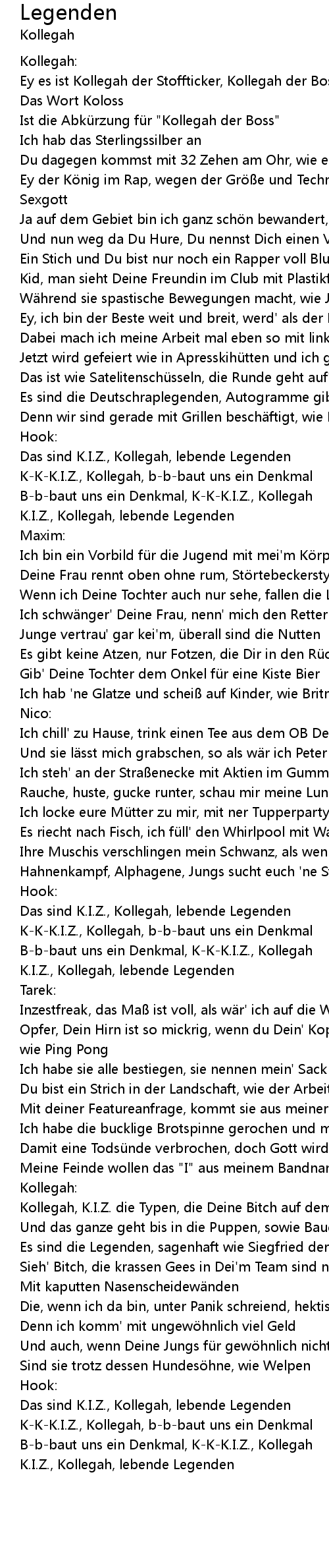 | Das sind K. I. Z., Kollegah, lebende Legenden | |