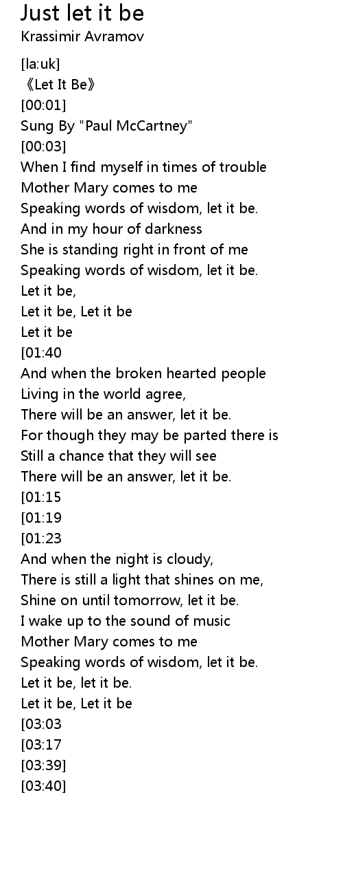 | [02:13][01:15] | Let it be, let it be. |