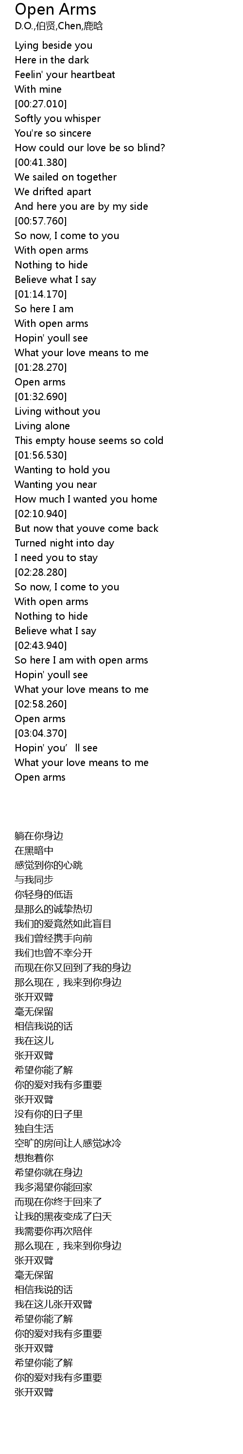 | [01:28.710] | Open arms |