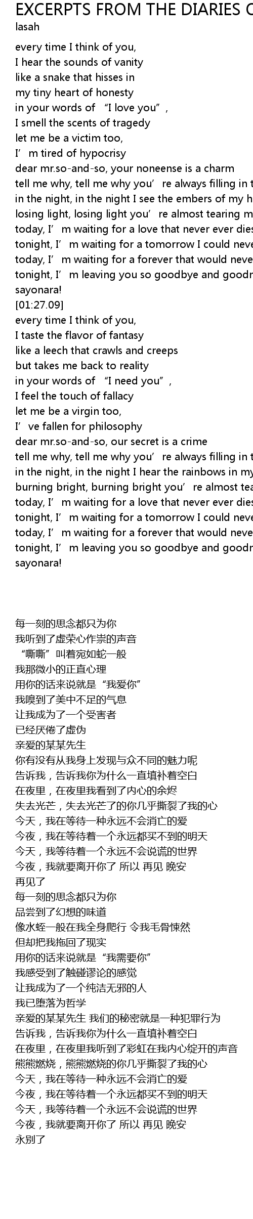 | Song | EXCERPTS FROM THE DIARIES OF _ |