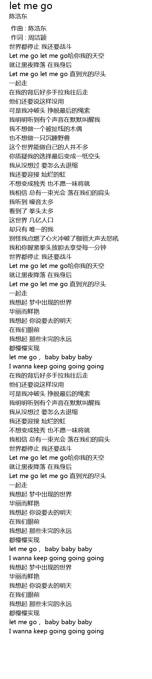 | [01:45.730] | Let me go let me go zhí dào guāng de jìn tóu |