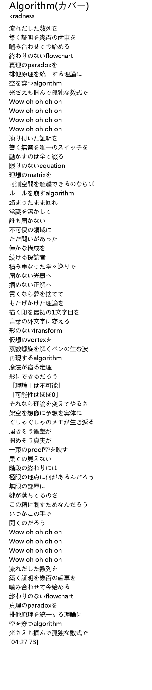 | [04:15.02] | 光さえも掴んで孤独な数式で |