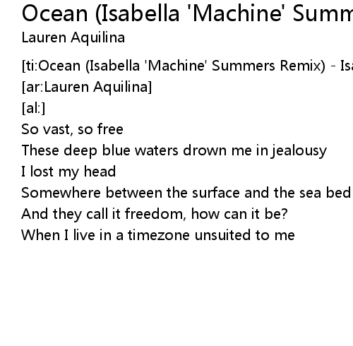 | [ti:Ocean (Isabella 'Machine' Summers Remix) - Isabella 'Machine' Summers Remix] | |
