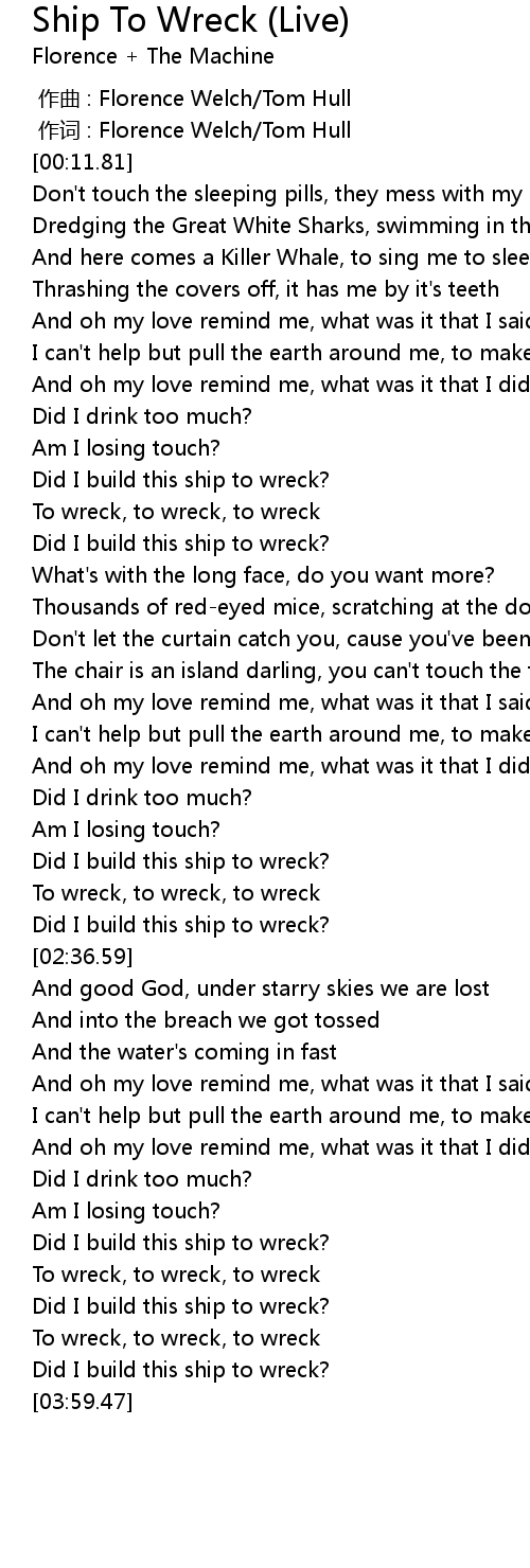 | [00:00.00] | 作曲 : Florence Welch/Tom Hull |
