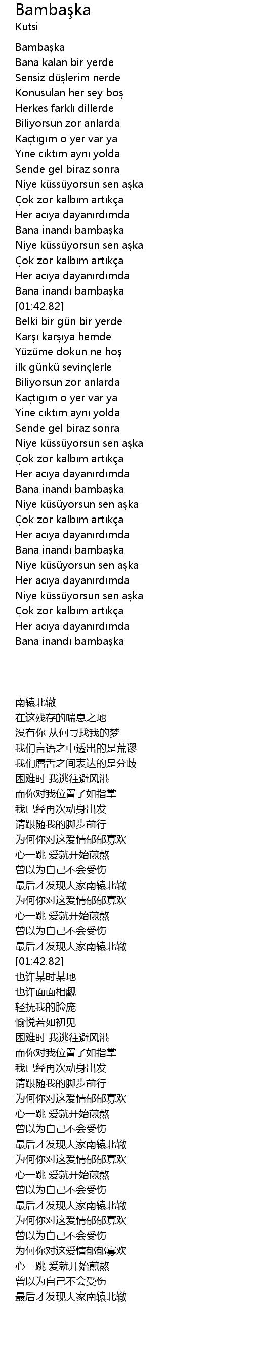 | [03:23.65] | Niye küssüyorsun sen aşka |