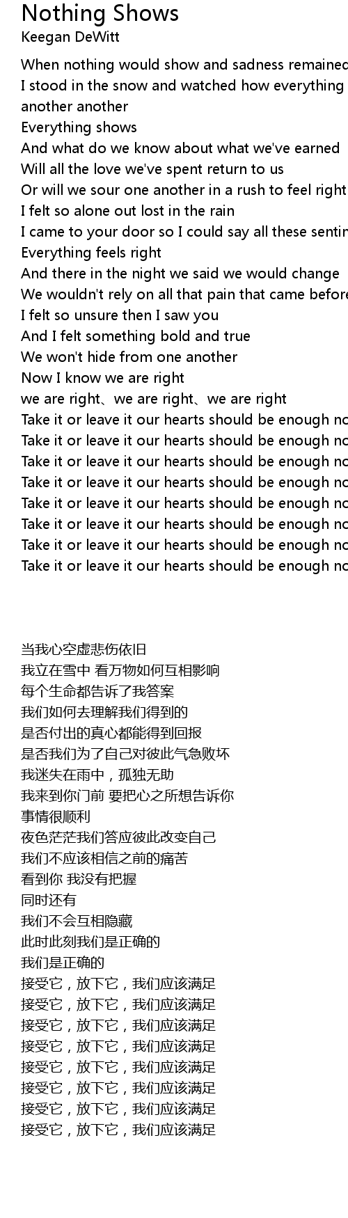 | [03:18.350] | Take it or leave it our hearts should be enough now |
