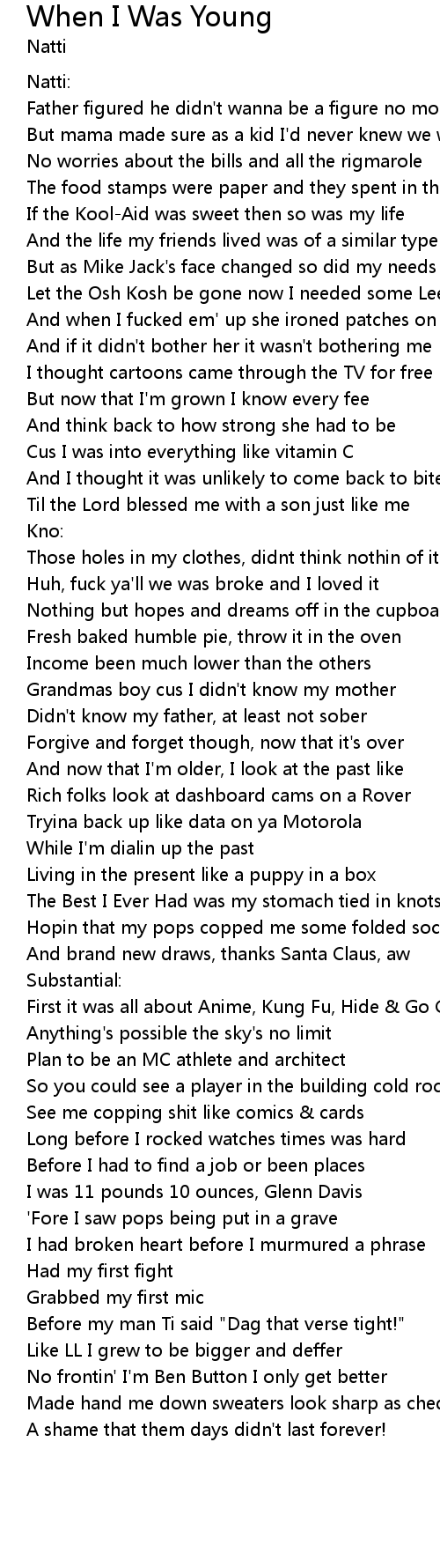 And now that I'm older, I look at the past like |