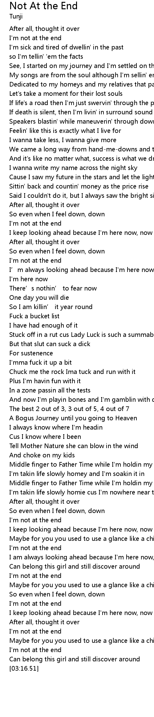 | [01:58.50] | I'm takin life slowly homie cus I'm nowhere near the end |