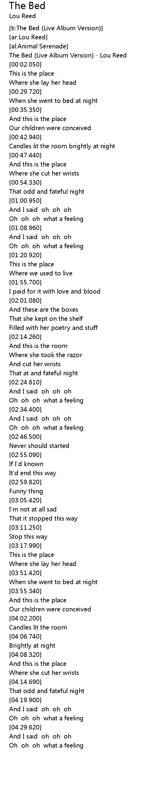[ti:The Bed (Live Album Version)] |