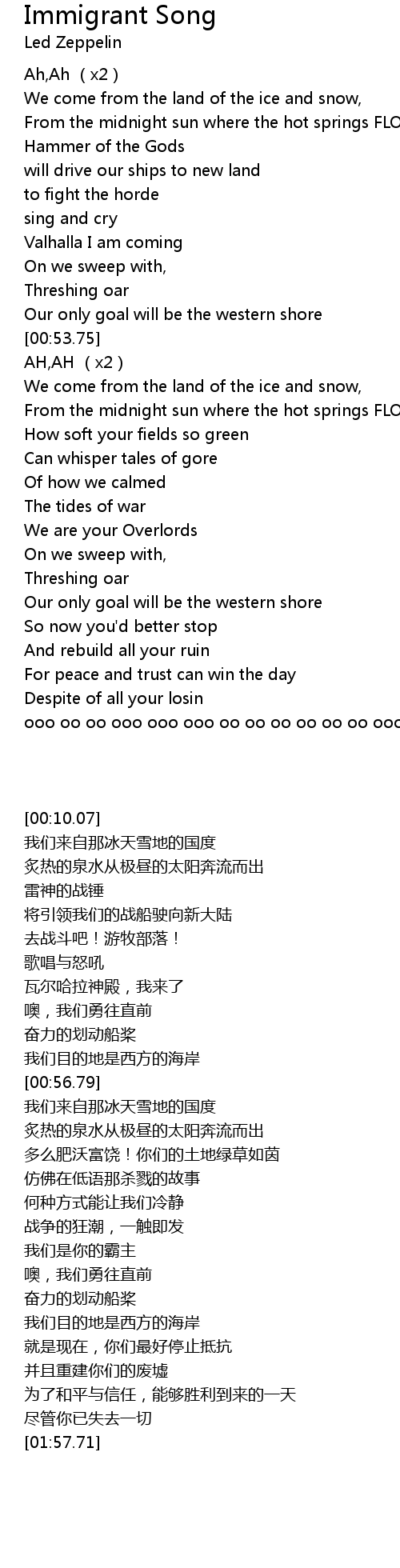| Song | Immigrant Song |