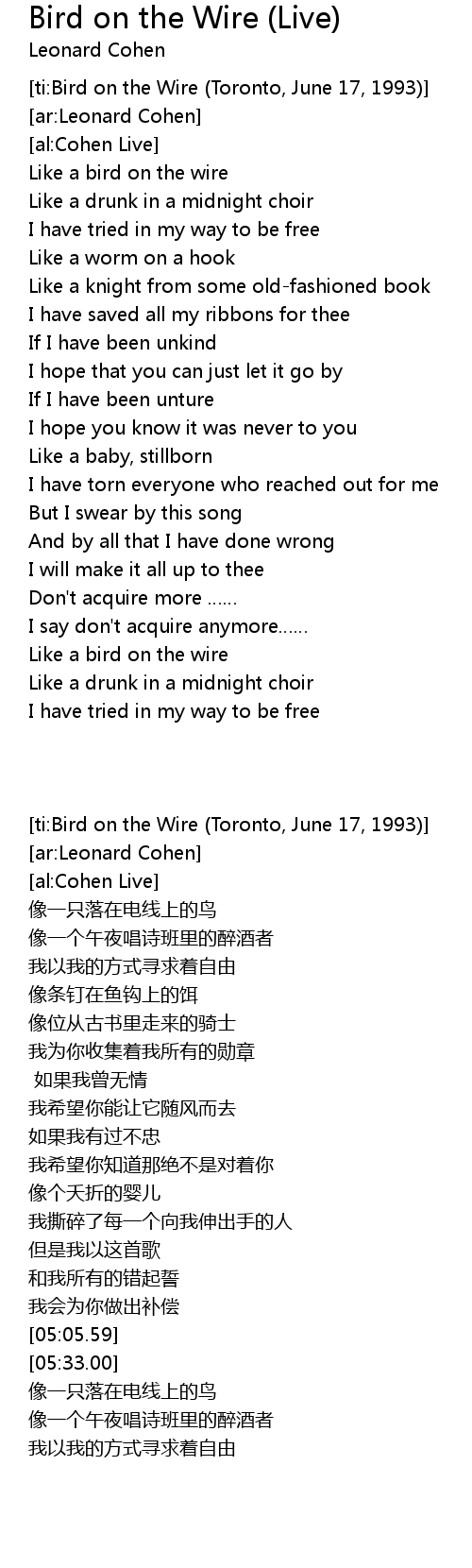 | [06:05.46] | Like a bird on the wire |