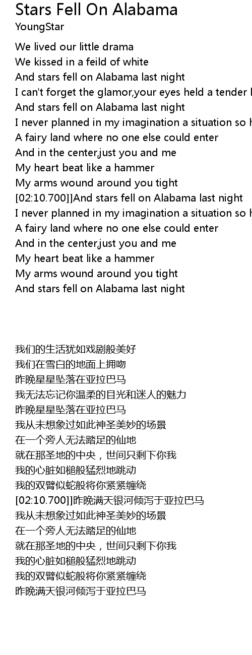 And stars fell on Alabama last night |