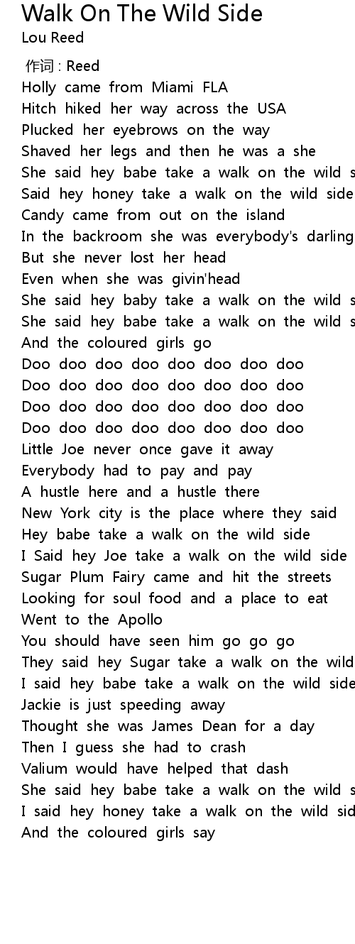| [01:10.50] | She said hey babe take a walk on the wild side |