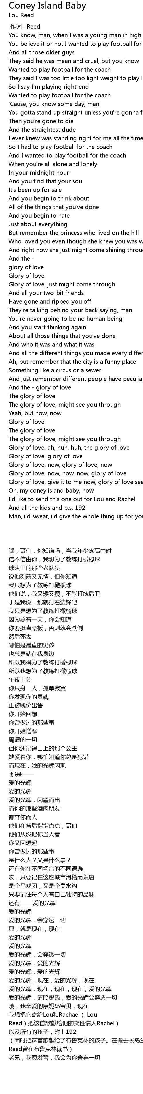 | [06:07.00] | Oh, my coney island baby, now |