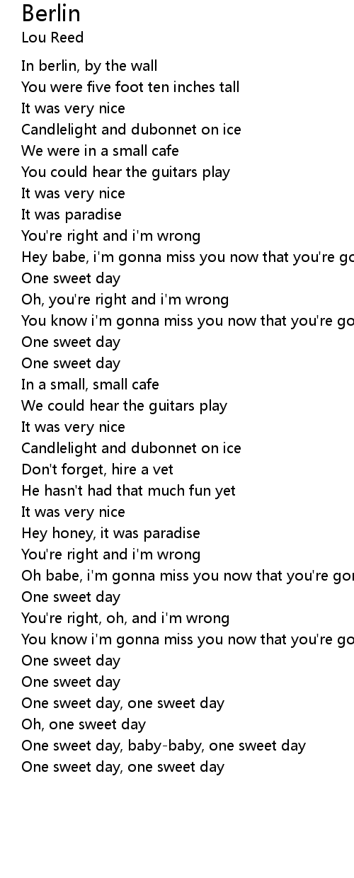 One sweet day, one sweet day |
