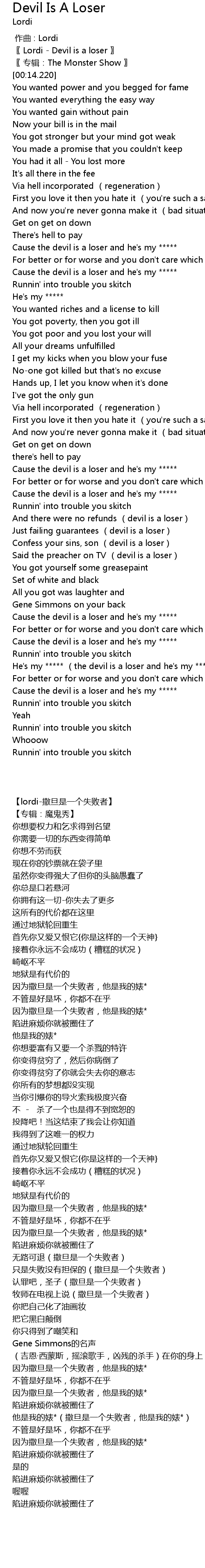 | [00:00.00] | 〖 Lordi - Devil is a loser 〗 |