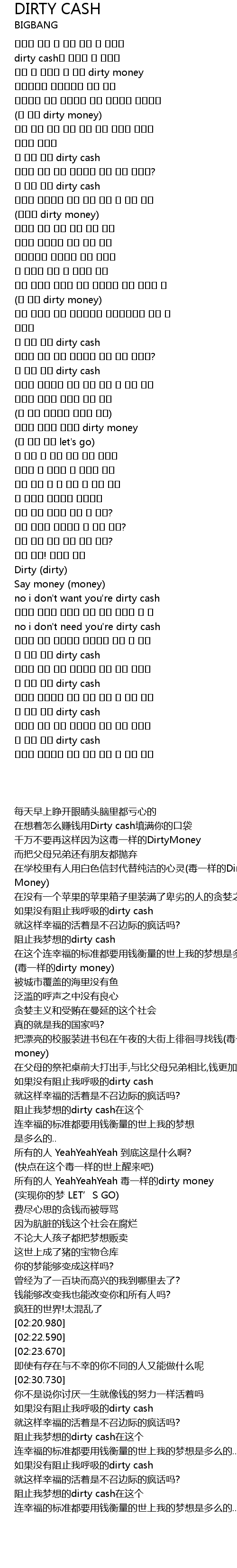 | [02:38.090] | 내 숨을 막는 dirty cash |
