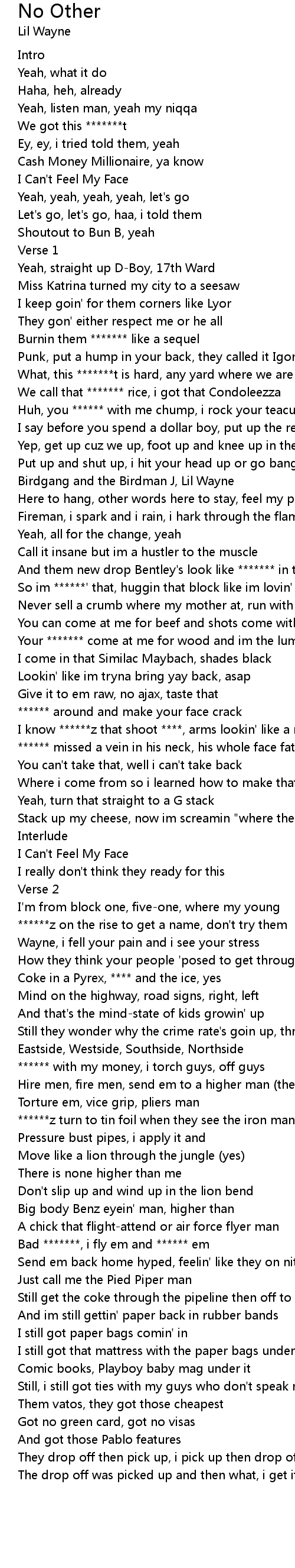 I know ******z that shoot ****, arms lookin' like a racetrack |