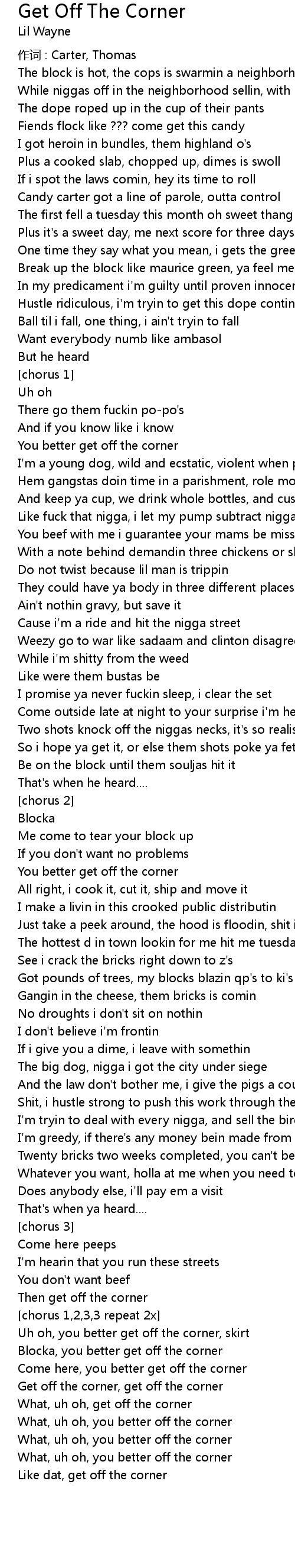 | Get off the corner, get off the corner | |