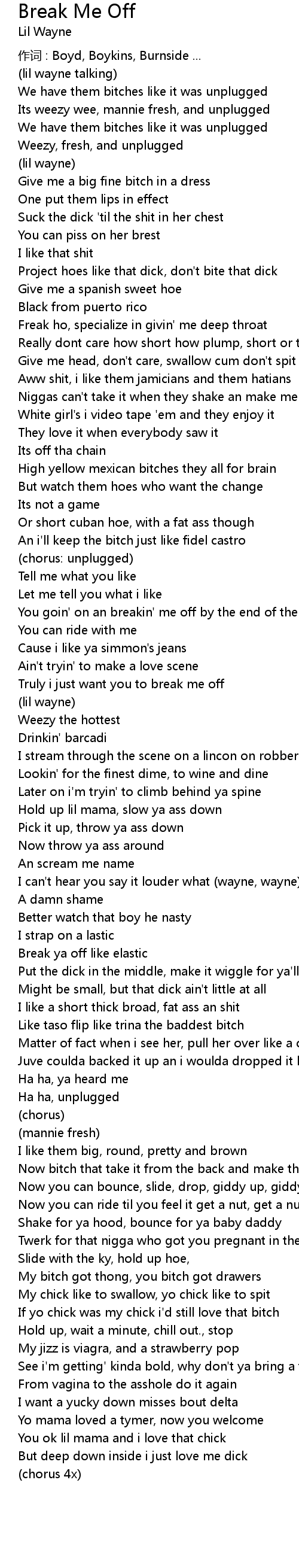 | Truly i just want you to break me off | |