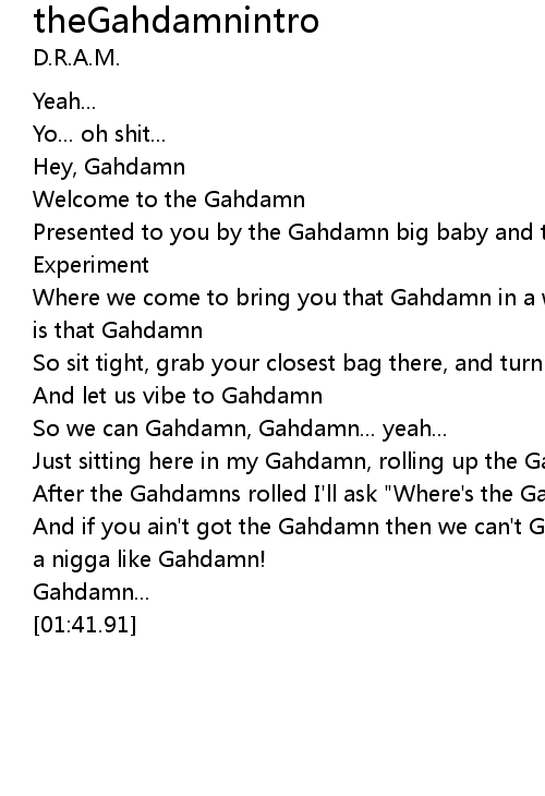 | [01:24.73] | And if you ain't got the Gahdamn then we can't Gahdamn and it'll have a nigga like Gahdamn! |